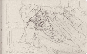 These are some subway sketches from last year when I was in town working on 'El Regalo Mágico'. Although I usually finish the drawings later, I love the immediacy and challenge of trying to discreetly capture as much as I can of these fleeting moments in time with pencil and paper. These are the 'successes' -what I'm not showing are all the drawings that were interrupted or never completed because somebody either woke up, moved too much, or got off the train.